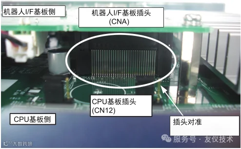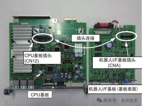 5. 将CPU基板插头(CN12)与新的机器人I/F基板插头(CNA)进行连接安装。