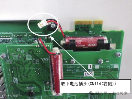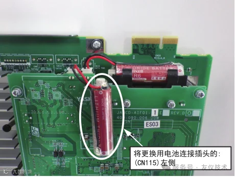 4. 现有电池连接状态时,将新的更换用电池连接到插头【CN115(左侧)】上。