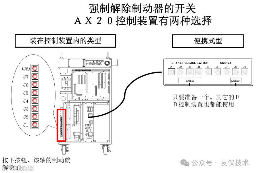 紧急时改变机器人的姿势 制动解除开关(选购件)