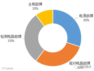 根据经验粗略统计,有30%电源方面的故障,有30%是驱动电路方面的故障,有30%是检测电路方面的故障,有10%是主板方面的故障。