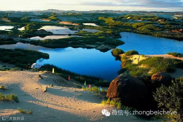 草原 勃隆克沙漠是观赏自然奇景和体验蒙古 族风情的好去处。这里有金色的沙山、碧绿的湖水、如茵的草原、奇异的怪石。种种看似奇异的组合就这样完美地融在一 处,让人如在梦中一般。 旅游区内还特别设有观赏区、娱乐区、生态建设示范区等,主要项目包括赛马、射箭、滑翔、 滑沙、快艇、皮划艇、游泳、垂钓、水上游戏、沙漠驼队探险等,游乐之余,你还可以到民族餐厅品尝内蒙古风味菜肴。