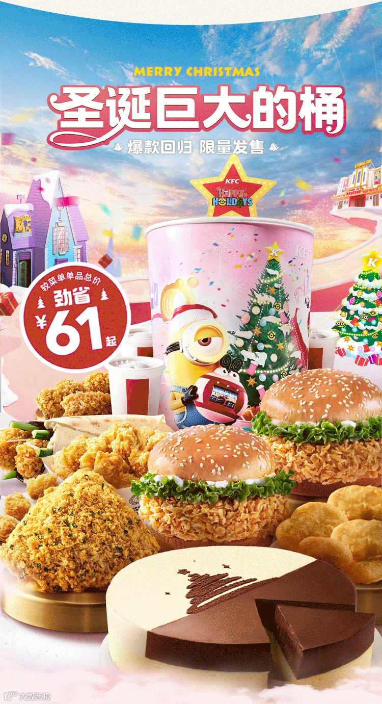 圣诞巨大的桶小黄人乐园大玩具版肯德基宅急送送货时间:2022年12月5日-2022年12月25日11:30-20:30;