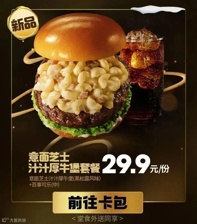 套餐内容:香辣鸡腿堡*2个、老北京鸡肉卷*1个、热辣芝芝肉酥脆皮鸡2.0*1块、热辣香骨鸡*3块、黄金鸡块*5块、劲爆鸡米花(小)*1份、黑巧克力轻芝士舒芙蕾蛋糕(6寸)*1只、百事可乐(中)*3杯,售价129元(不含外送费)。