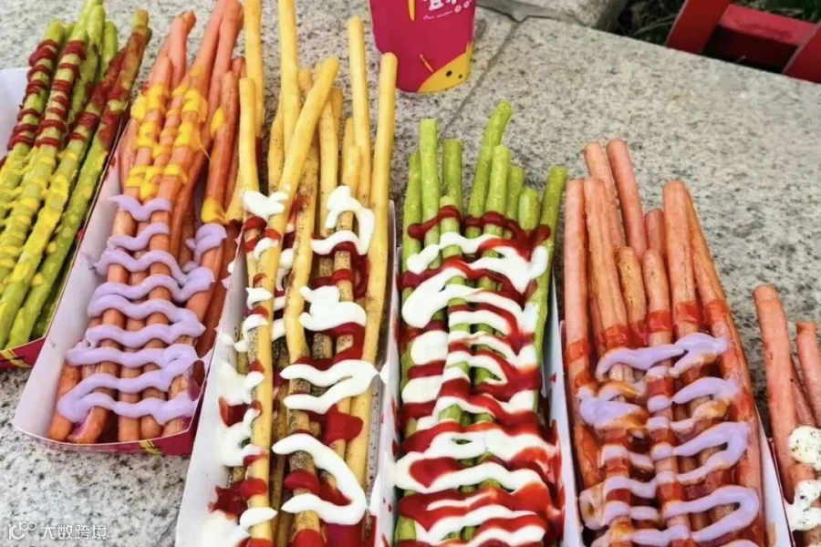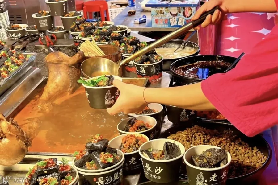 铁板鱿鱼,臭豆腐,捞汁小海鲜,烤生蚝,章鱼小丸子,卷烤面筋卷饼,炸长薯条,炸蘑菇,武汉热干面,烤猪蹄等等........
