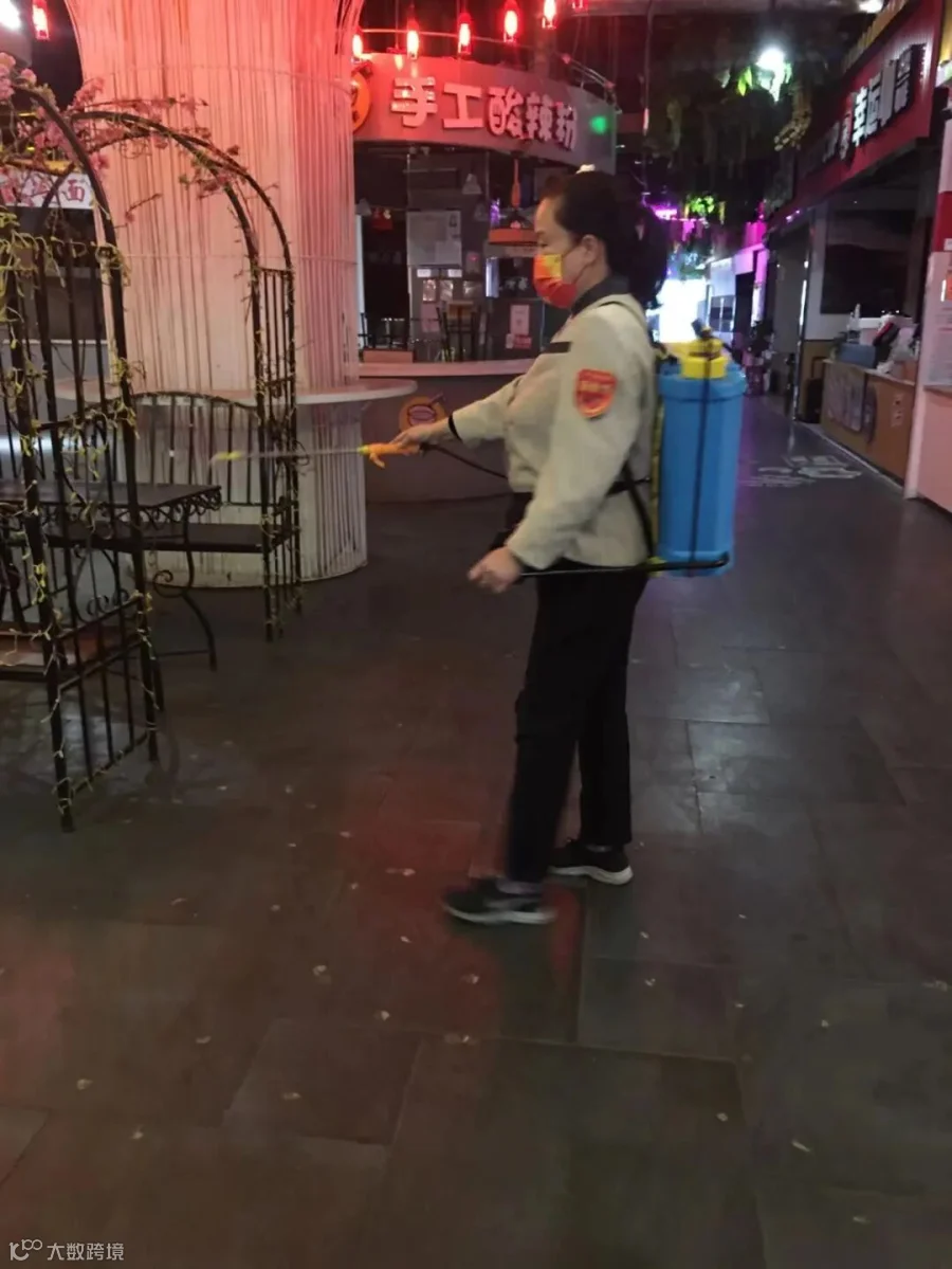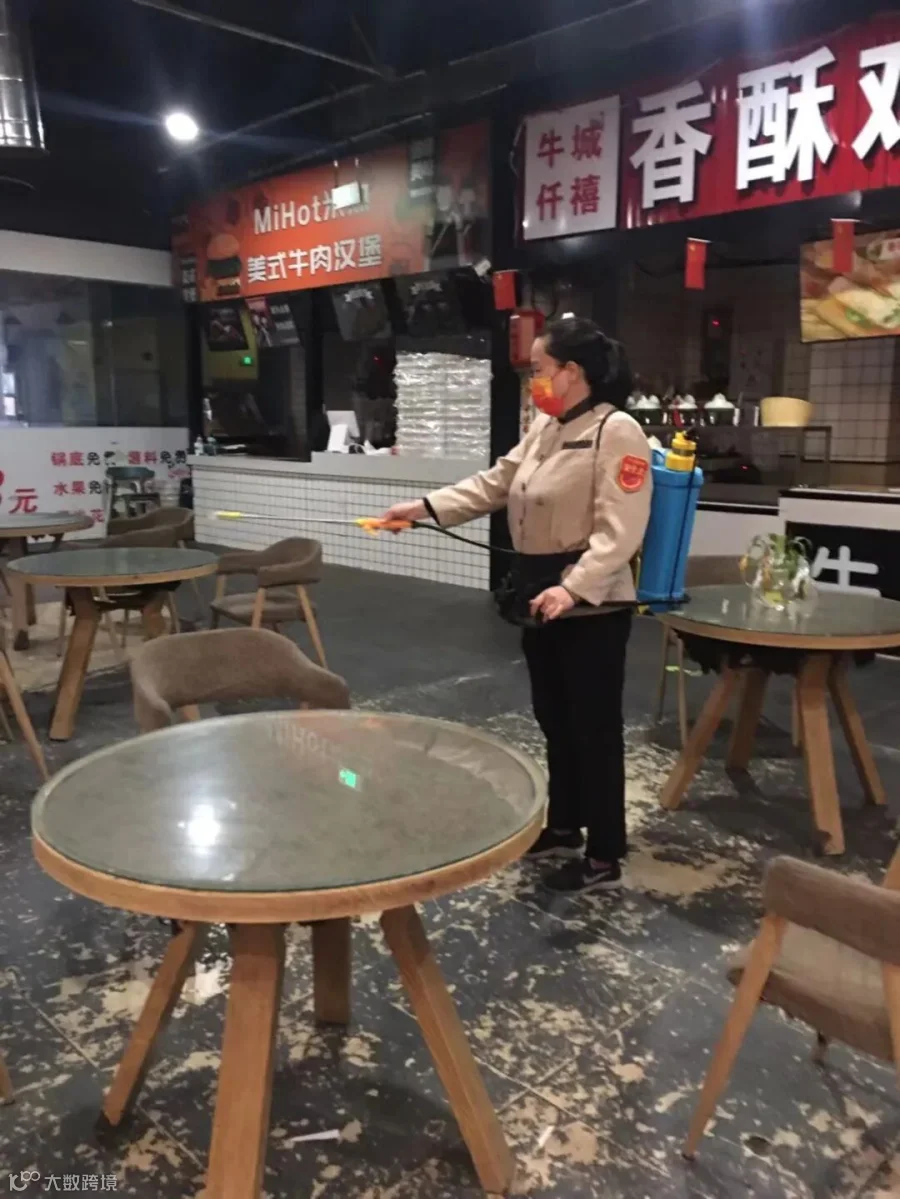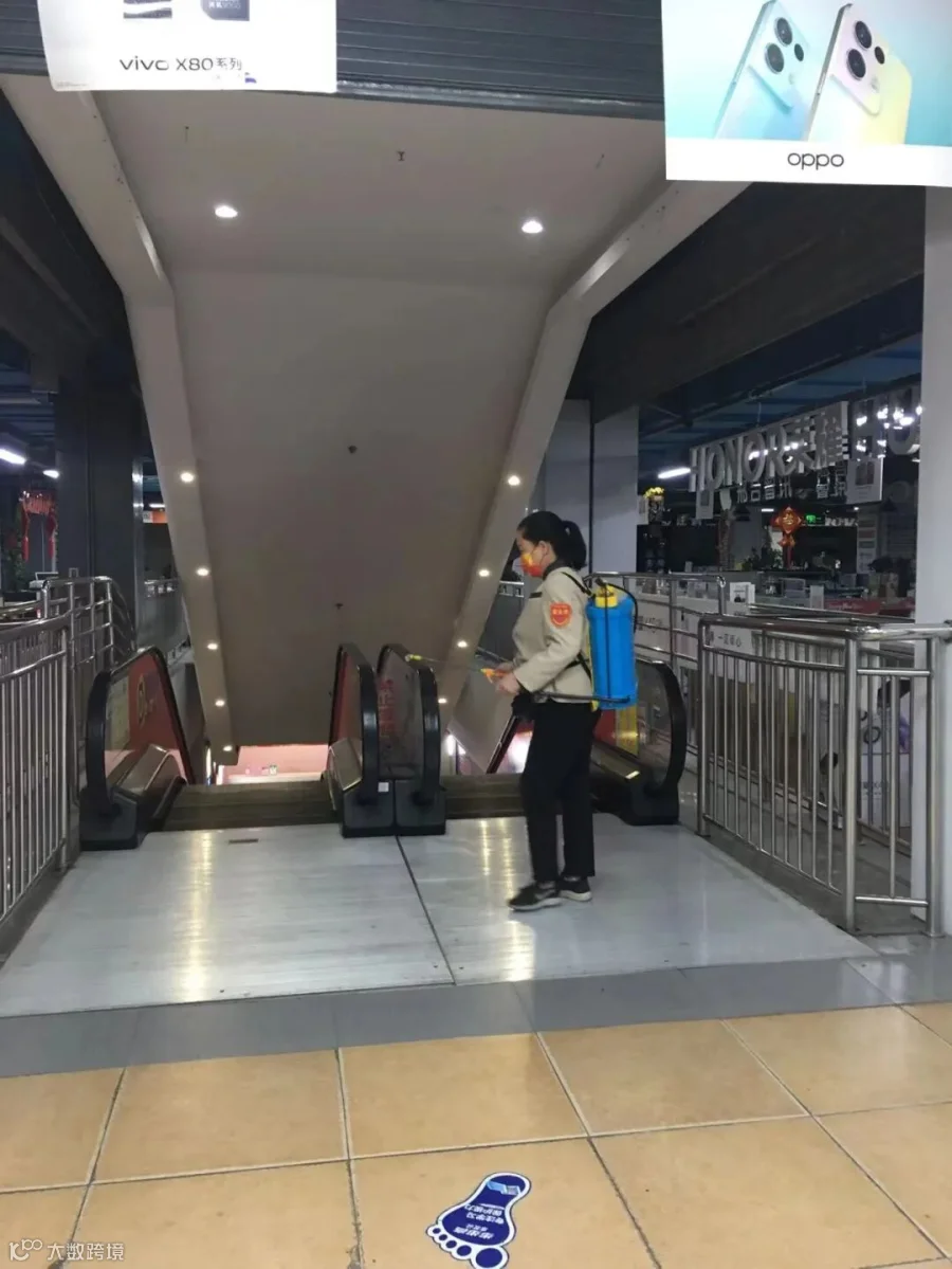 消杀人员每天营业前、打烊后、高频定时每2个小时对商场过道、公共设施、各店铺周边区域、地下室停车场、扶梯、电梯、卫生间等进行全方位无死角的消杀工作,营造安全的消费环境。