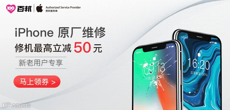 iPhone X/XS/XR/11系列原厂电池原价519元-券50元〓到手价469元。百邦全国门店免收 iPhone 原厂电池维修服务费。