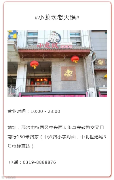 导读:19.9元抵小龙坎火锅300元菜品代金券!满200可用1张(锅底、小料、酒水除外)!周末节假日通用