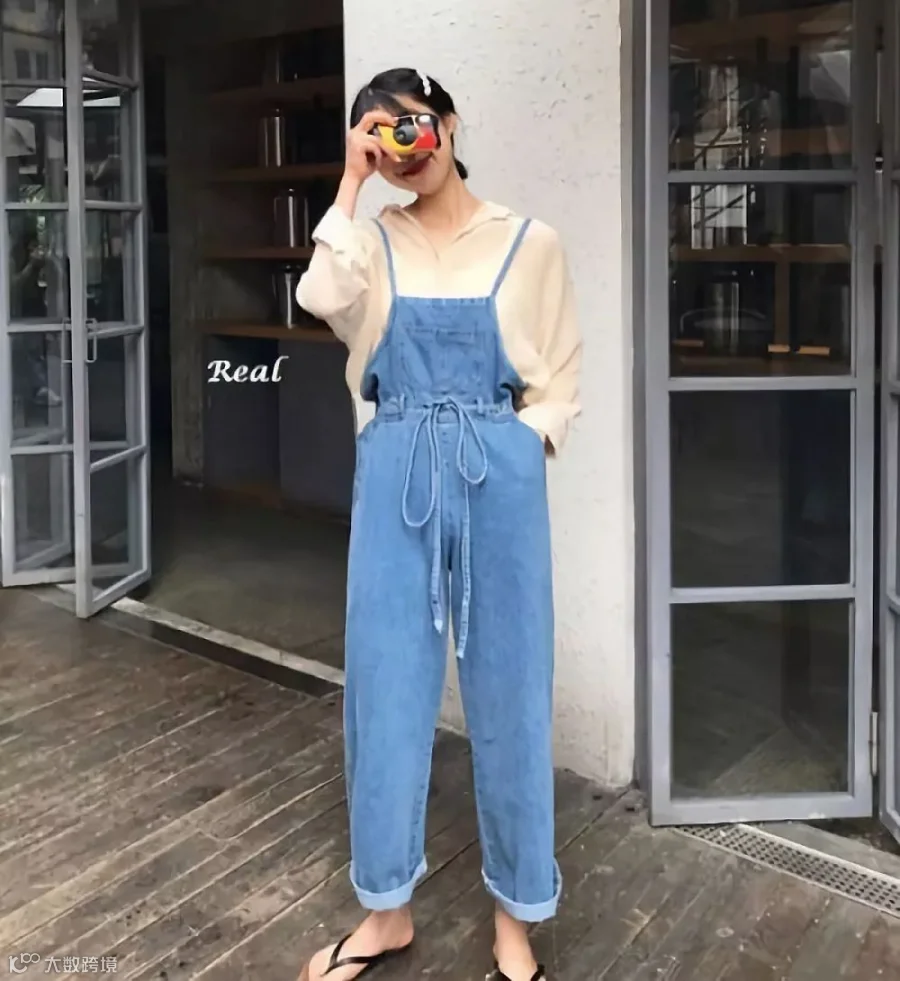 背带裤胸前特有的“挡布”,还可以解决小胸、大胸的穿衣尴尬,小细节可以同时解决两种烦恼。