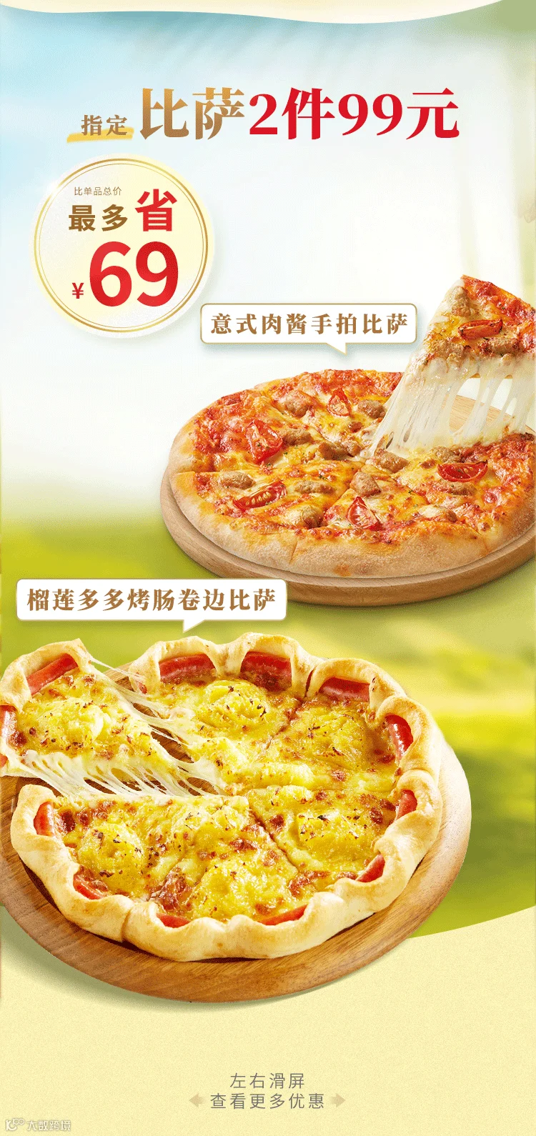本活动有关优惠权益不与任何未标明“可与其他优惠共享”的权益共享。本海报产品及包装以实物为准,产品实际规格以克重为准,具体产品以及价格以餐厅菜单为准,图示内容仅供参考。本活动只适用于广东省内必胜客餐厅(除汕头,揭阳,潮州外),广西壮族自治区必胜客餐厅,海南省必胜客餐厅,具体请以门店实际运营情况为准,详恰餐厅。本活动不适用于机场、火车站、高速公路、旅游度假、游乐场、展览馆、Bistro 、Express、Les Elites、奥特莱斯、精选餐厅以及部分必胜客特定餐厅。