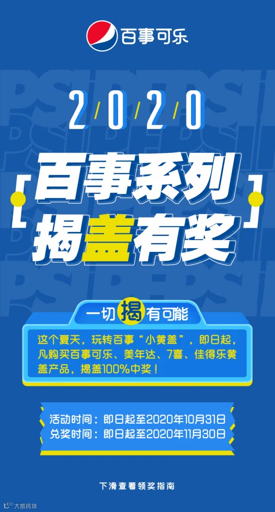 导读:百事玩转“小黄盖”攻略来啦!喝百事,揭盖有奖,中奖率100%!