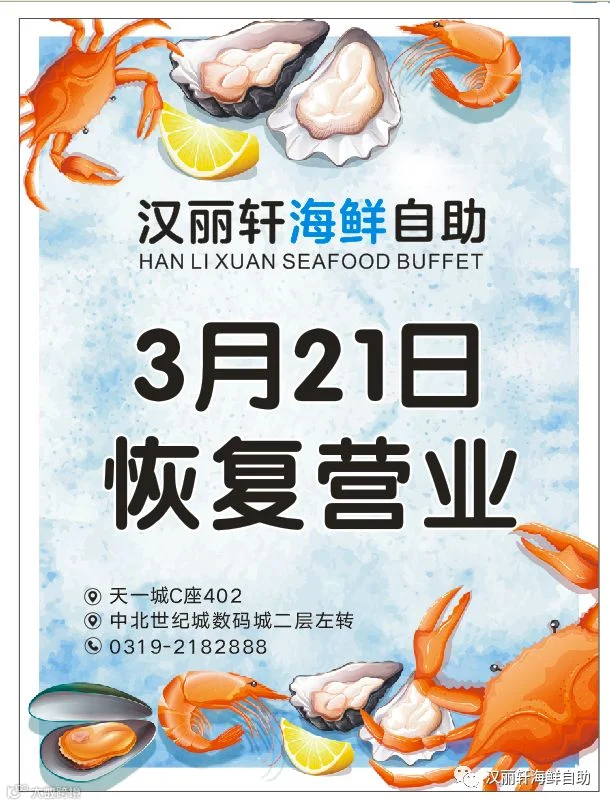 汉丽轩海鲜自助3月21日恢复营业