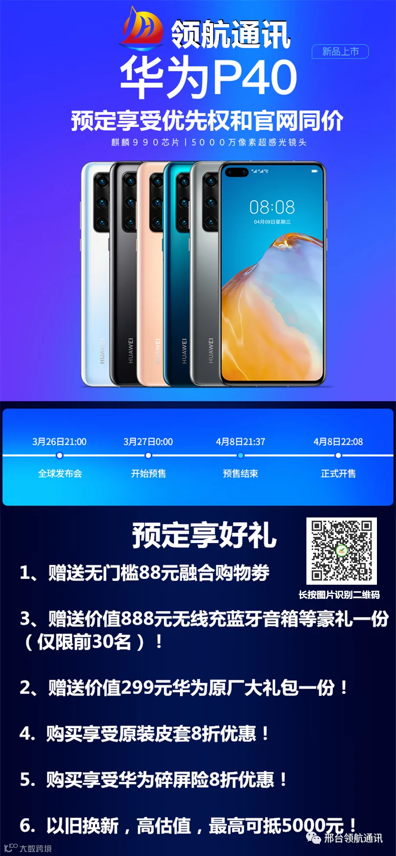 领航通讯 华为P40 4月8日正式开售
