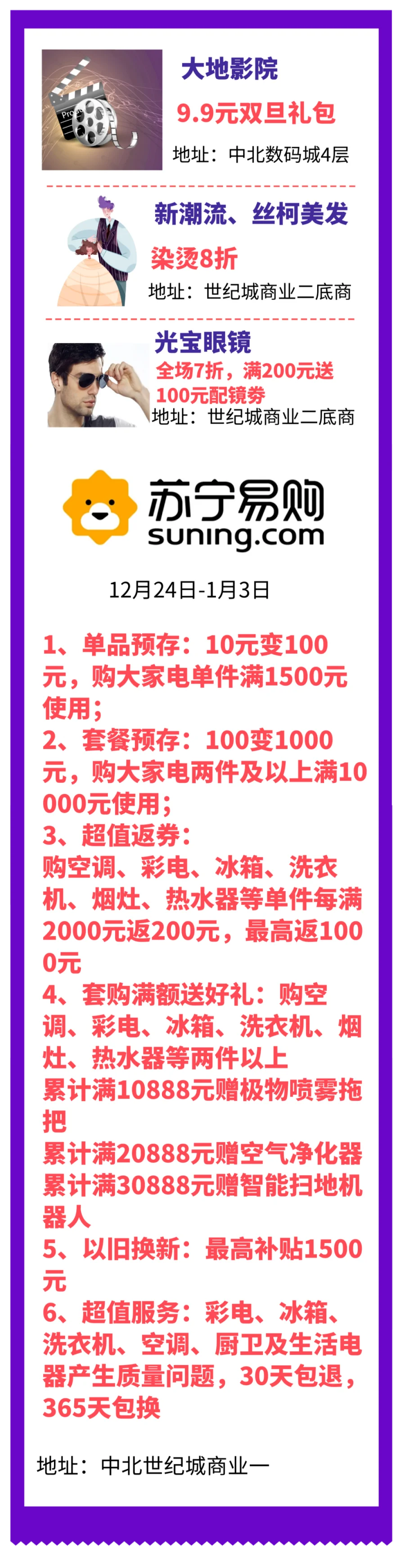 转发本文,即可在12月31日-1月1日到中北世纪城6楼领取套票一份!