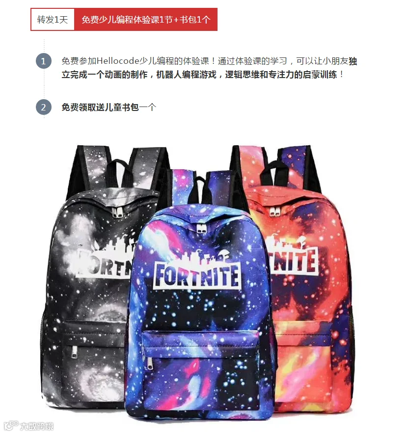 少儿编程课0元试听!再赠送书包一个!提升孩子逻辑思维能力和理解力!让孩子主动思考问题,变得更加聪明!