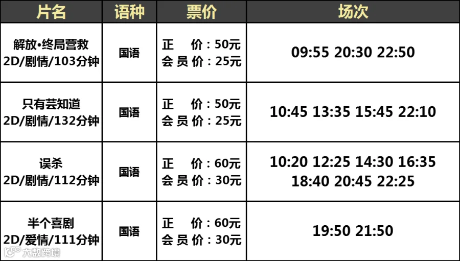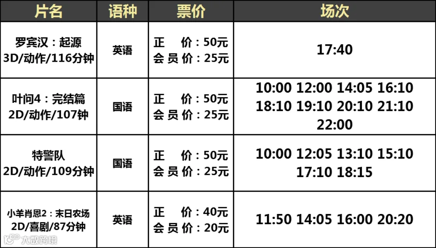【大地影院】12月28日(周六)影讯