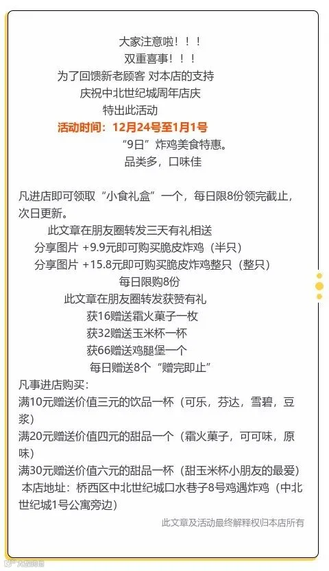 中北世纪城口水巷子“鸡遇炸鸡”特惠月