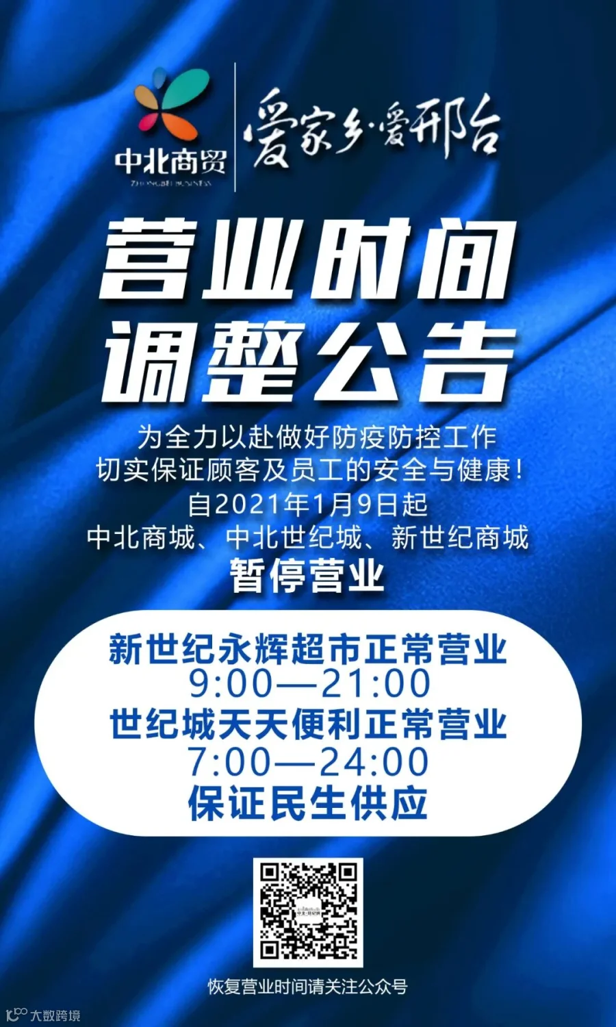【中北世纪城】营业时间调整公告!