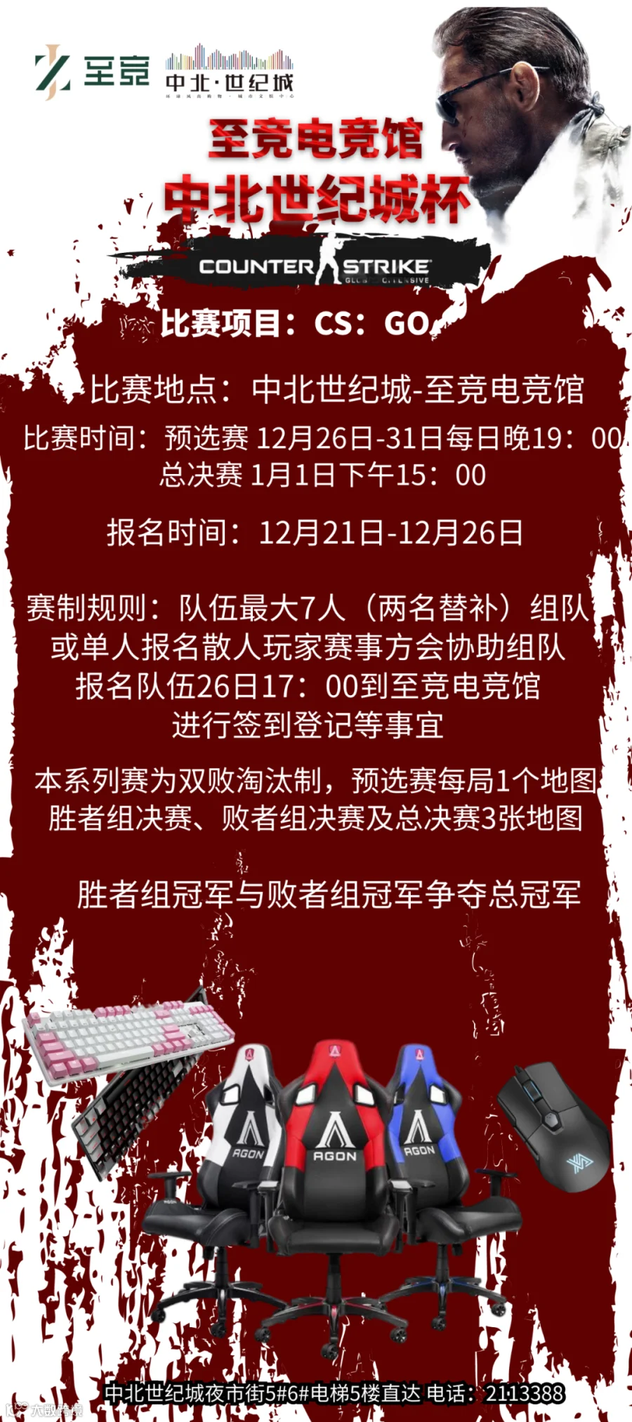 冠军队伍:1499元爱攻定制电竞椅5把+500元网费+中北世纪城杯证书及奖杯