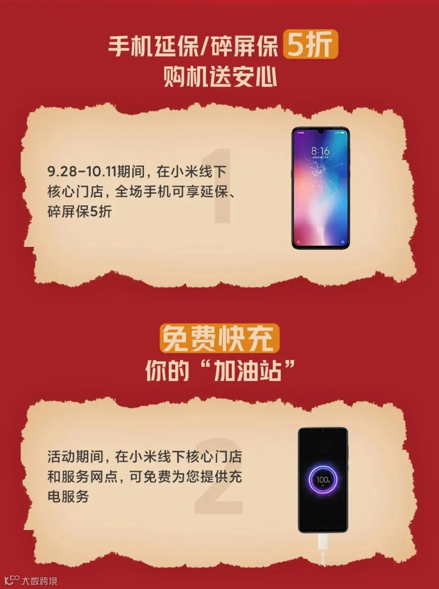 除此之外,到小米线下服务网点还可享0元贴膜、设备送修免费领备用机等服务,让你嗨翻黄金周!