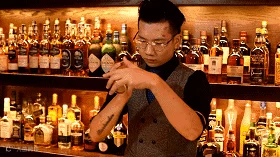 一杯属于鸡尾酒皇后的MANHATTAN, 传说是丘吉尔的妈妈创造的。既有苦精的淡淡苦味,又有甜苦艾酒的微甜,复杂的口感交织在一起,入口却一定是非常深沉而讲究的香味,甘甜可口,让人回味无穷。