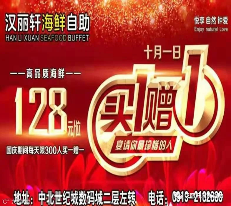 汉丽轩海鲜自助十月一日盛大开业,买一赠一!!!