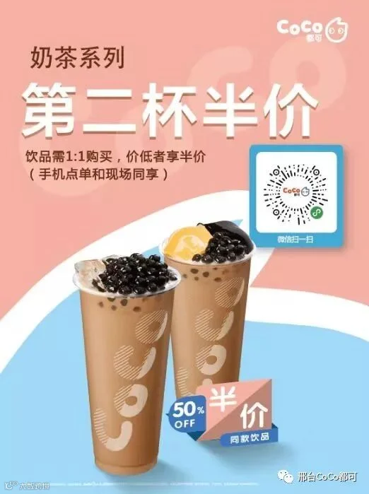 全场奶茶系列第二杯半价