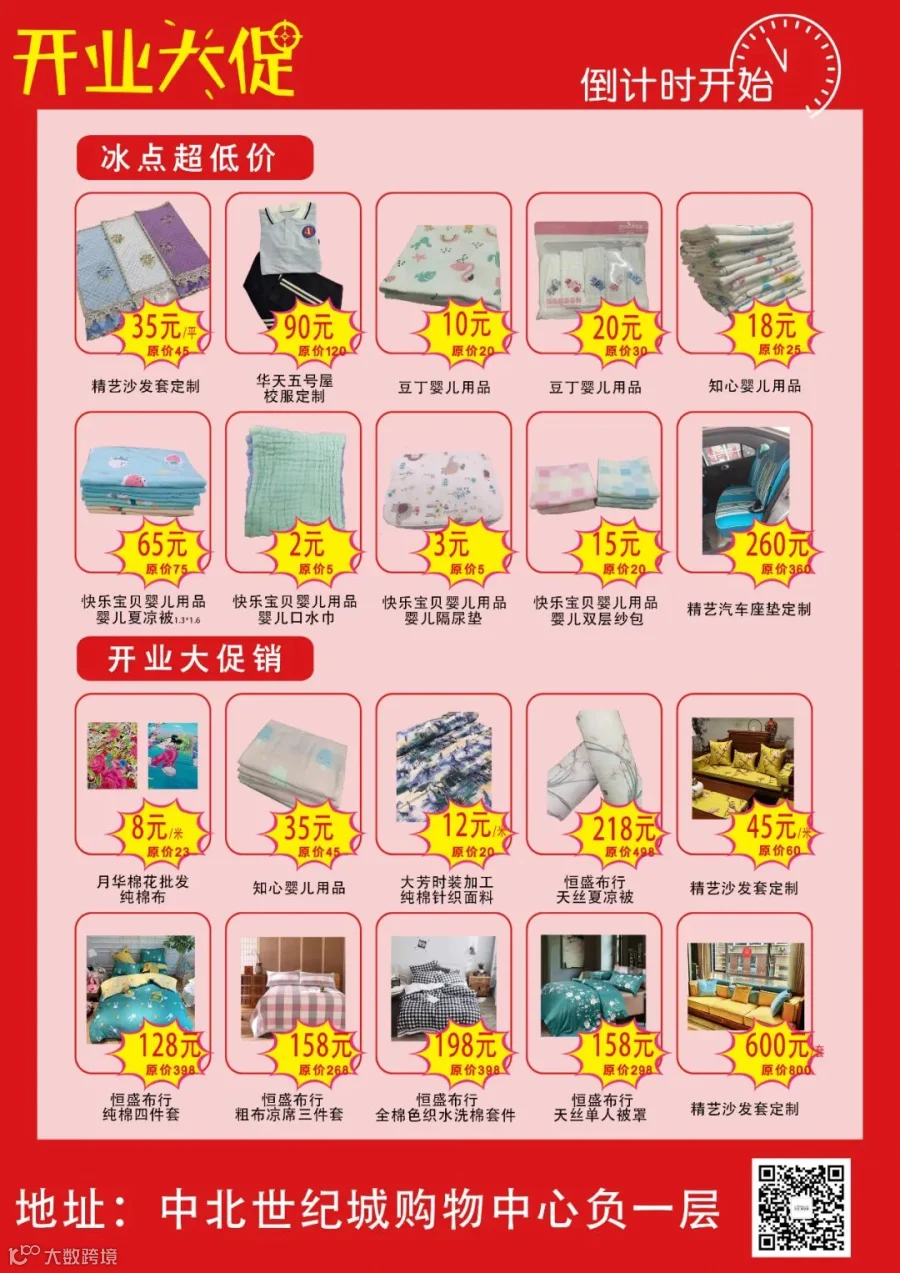 中北世纪城负一层布艺馆隆重开业