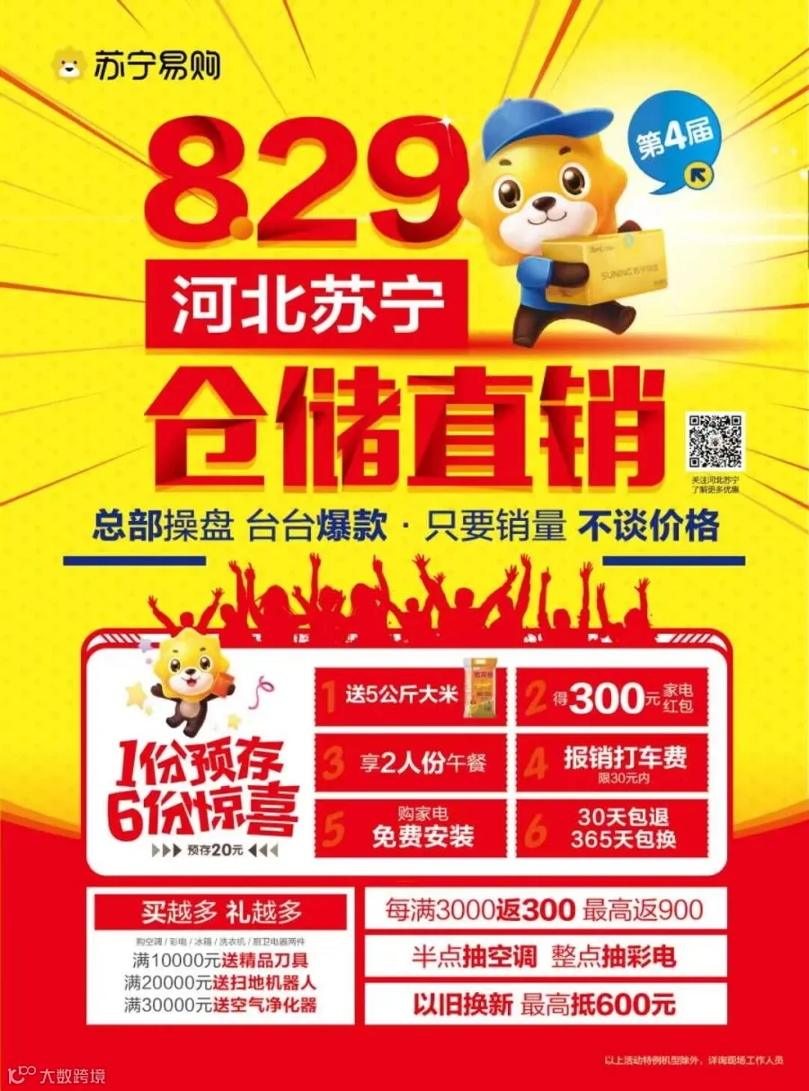 导读:829河北苏宁家电仓储直销总部操盘 台台爆款只要销量 不谈价格️提前预交20订金1、送300元家电红包
