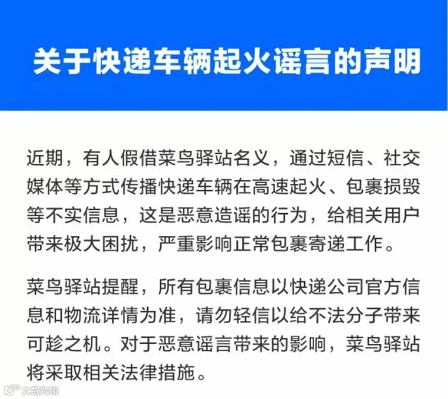 13日,@菜鸟驿站官方微博 发辟谣声明: