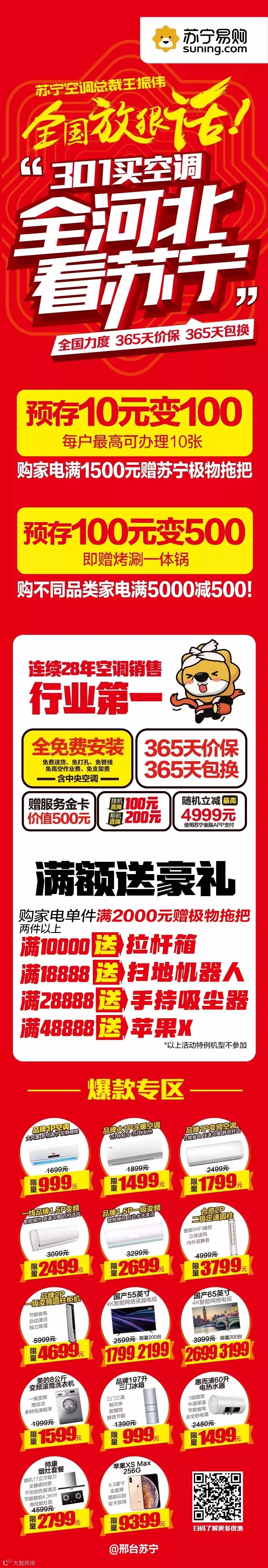超值预存,预存10元变100元,购家电满1500元送苏宁极物拖把;