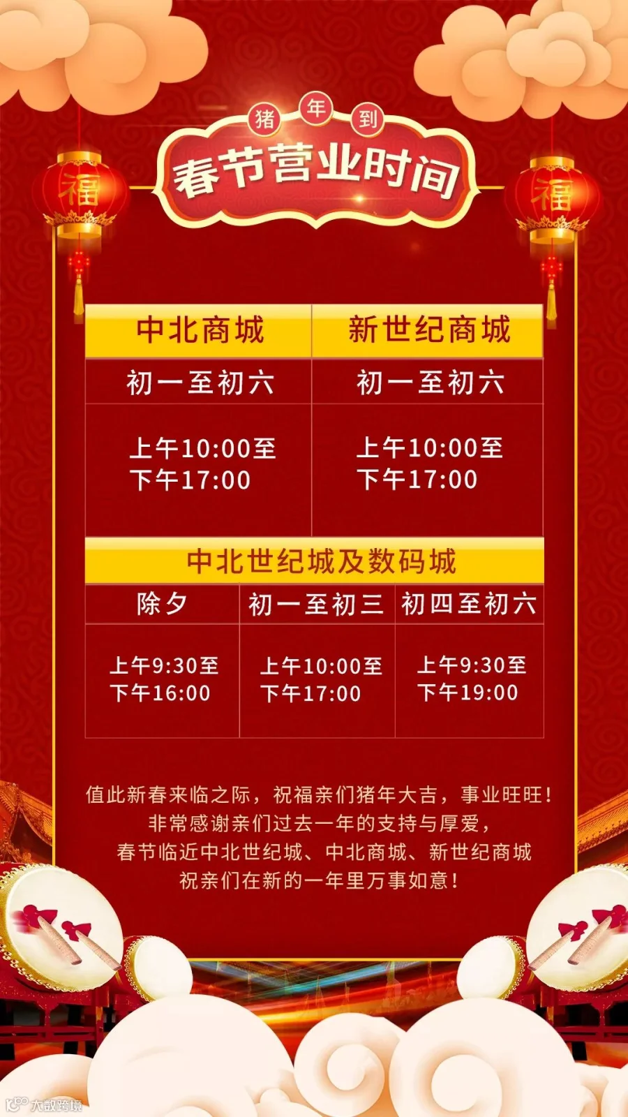 ③所有抖音控(喜欢拍抖音的朋友)在现场录制视频并说:“我在中北商城/新世纪商城给大家拜年了!”的抖友也可以抽红包!