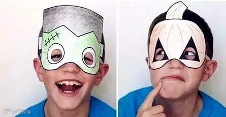 让孩子自己发挥想象,DIY一个最简单也是最实用的纸板面具,南瓜、猫、怪物等,这些都是万圣节标配,戴上它们来参加派对一定很有节日气氛!