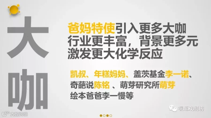 第二季全面升级翘首回归,明星阵容更加强大,爸妈特使引入更多大咖,行业更丰富,背景更多元激发更大的化学反应。全国海选蓄势待发,爸妈特使引入素人嘉宾为大众代言,表达更贴近人群的观点,萌娃村委增加新鲜血液。本活动邢台地区唯一授权单位为嘿逗戏剧坊。