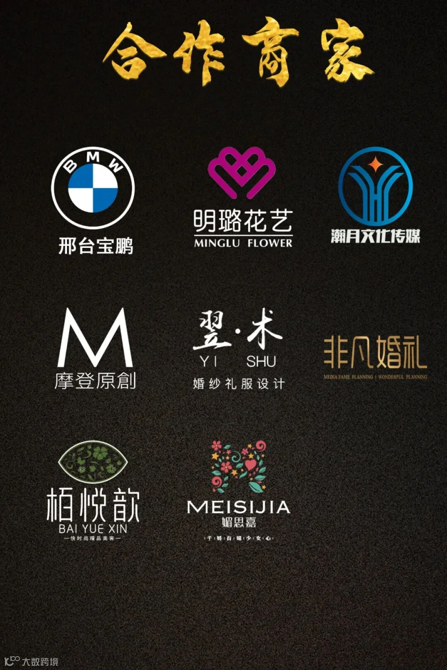 摄影工作室、婚庆公司、商圈、汽车美容机构、美发机构、甜点制作工作室、养生美容健身机构、花艺工作室、知名车行、模特公司、商务会所、著名品牌、文艺教育、品牌服饰