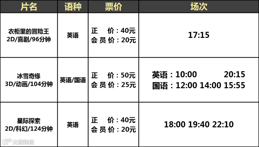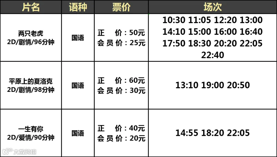 【大地影院中北世纪城店】12月5日(周四)影讯