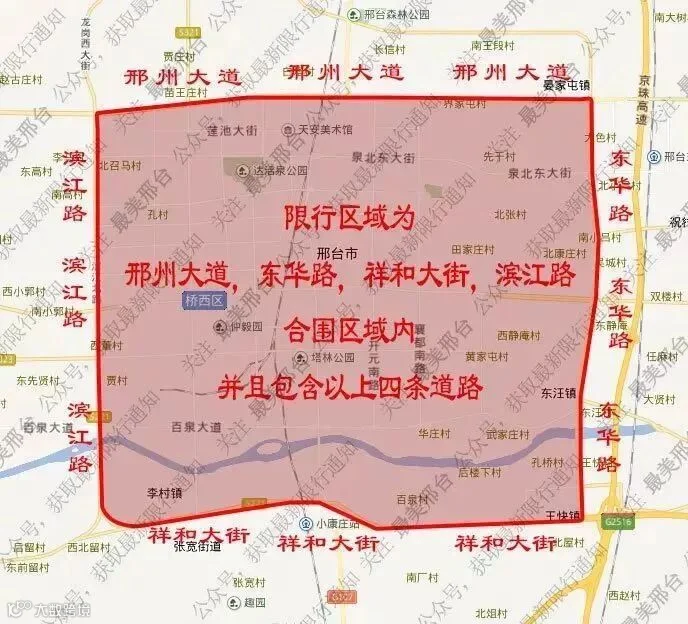 限行区域:滨江路、邢州大道、东华路、祥和大街(含上述四条道路)的围合区域。