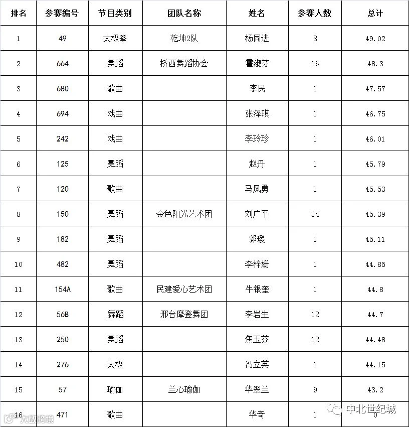 中北达人秀决赛排名