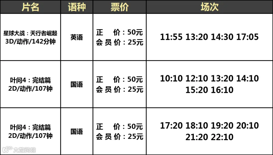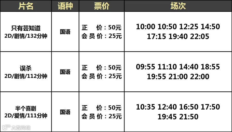 【大地影院】12月22日(周日)影讯