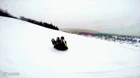 听说滑雪很危险,那我坐着轮胎装作四处看风景的样子一定很安全。
