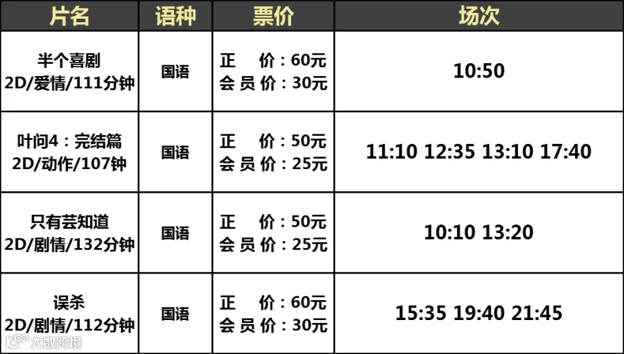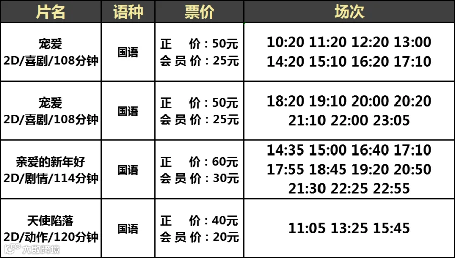 【大地影院】12月31日(周二)影讯