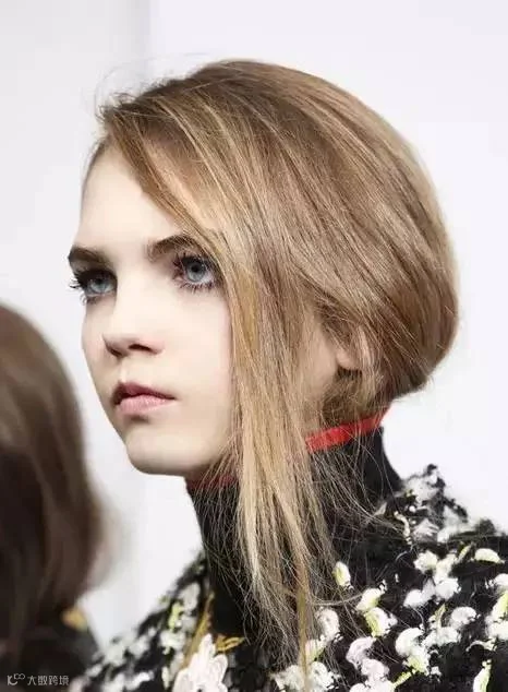 需要注意的就是,露在衣服外面的脑后头发一定要打造出蓬松感,