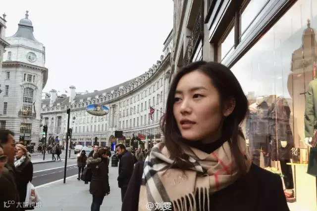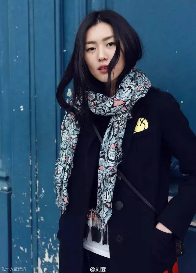 大表姐刘雯把头发放在围巾里,