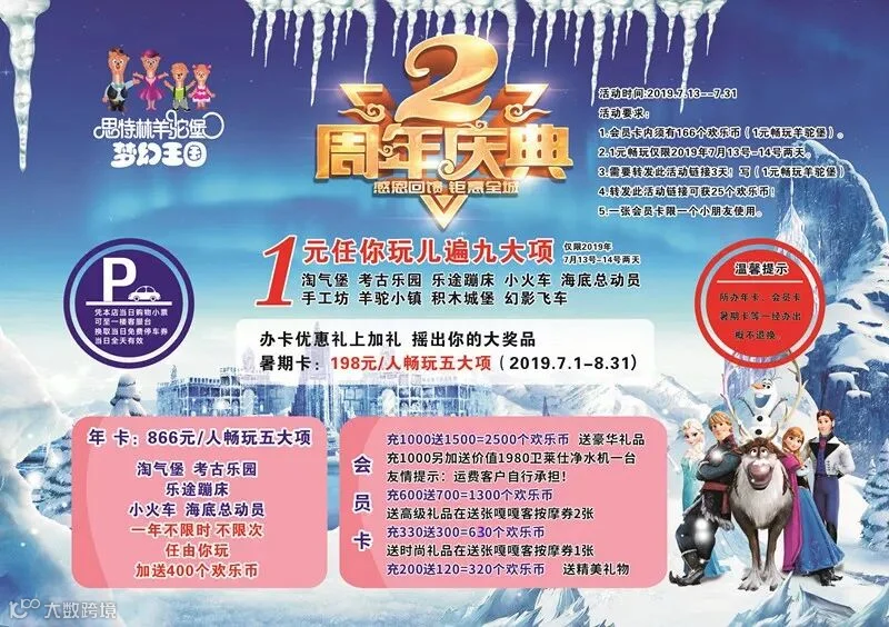 2.1元畅玩每张会员仅限一次!(会员卡内需有166个欢乐币)