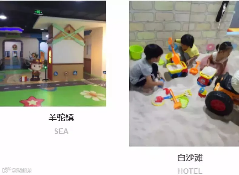 整个场地就是一个白沙滩,里面处处都是属于宝贝的宝藏,有利于培养宝贝探索的兴趣,激发想象力和创造力,设有互动投影小游戏,让宝贝体验游戏闯关的成就感。