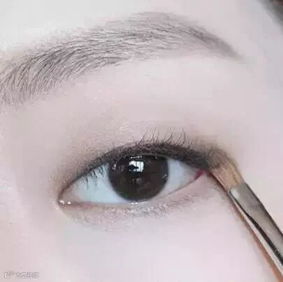 Step 1:用极浅的棕色眼影沿着眼窝轮廓在上眼皮晕染,这样能让眼睛看起来更加立体有神。