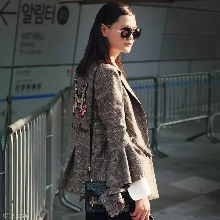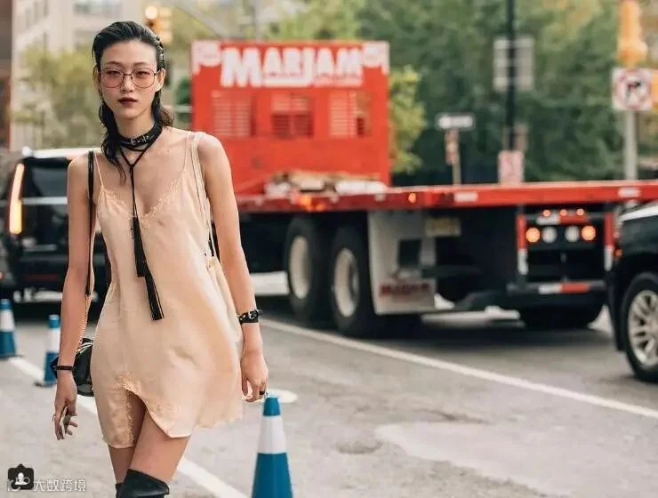 要拍出好看的行走街拍,关键在于步伐要大,并且看着镜头时的表情很重要,可以是不经意的微笑,也能是开怀的笑容,这也是非常好驾驭的姿势,只要背景街道不要太凌乱,基本上都能拍出好看的影像。