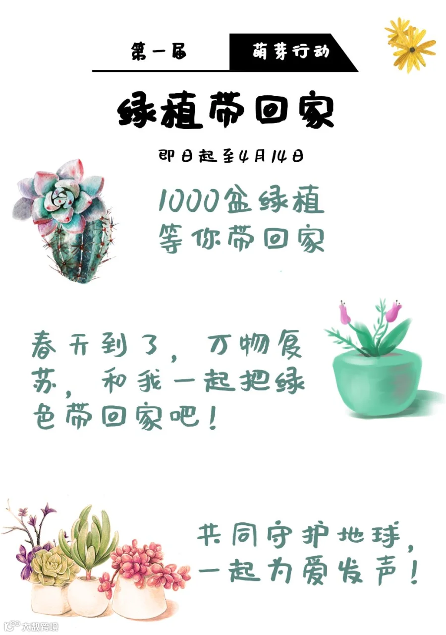 中北世纪城,为公益发声、为环保添彩。在这个春天重磅打造“萌芽行动●绿植带回家”活动,免费送出 1000 份 绿植!