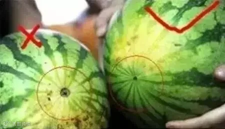 1、西瓜底部的圈圈,越小越好;相反的,底部圈圈越大,皮越厚,越难吃。