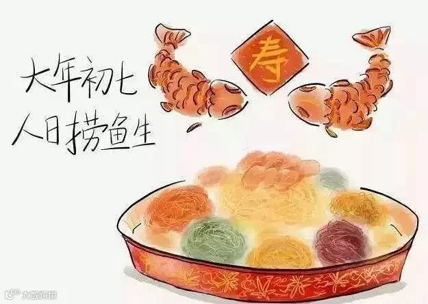南方一些地区,汉族民间有在人日节"捞鱼生"的习俗,捞鱼生时,往往多人围满一座,把鱼肉、配料与酱料倒在大盘里,大家站起身,挥动筷子,将鱼料捞动,口中还要不断喊到:"捞啊!捞啊!发啊!发啊!",而且要越捞越高,以示步步高升。