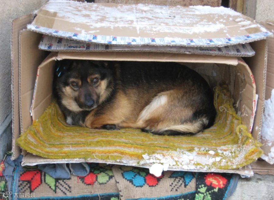 不用的快递盒子,随便铺上一些旧衣服,就可以成为让它们熬过寒冬的家。